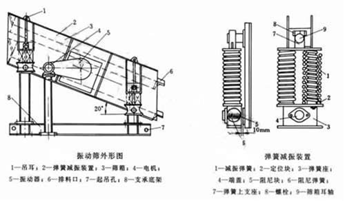 圓振動篩的結構: 圓振動篩由偏心式激振器、篩箱、電動機、底座及支承裝置組成。