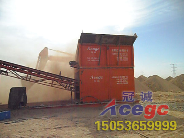 臥式干選機分兩種,一種是帶尾料輸送桿的,采用一臺裝載機上料,廢料用尾料輸送桿輸送出去,使用于4米左右沙層,上料高度為3.7米,裝載機可以直接上料不用助坡。另外一種是不帶尾料輸送帶,尾料用裝載機清除走,整機要用兩臺裝載機,上料高度為3.7米,裝載機可以直接上料不用助坡。整機用電45kw.24小時免費咨詢電話:400 9949 111 手機:15053659999 15653473333