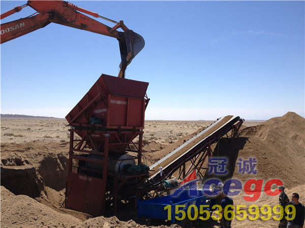 特種干選機(jī)采用挖掘機(jī)上料,廢料用輸送桿輸送走,使用于3米左右沙層,上料高度為4.5米,裝載機(jī)可以直接上料不用助坡。整機(jī)用電量為45kw左右。小時(shí)免費(fèi)咨詢電話:400 9949 111 手機(jī):15053659999 15653473333
